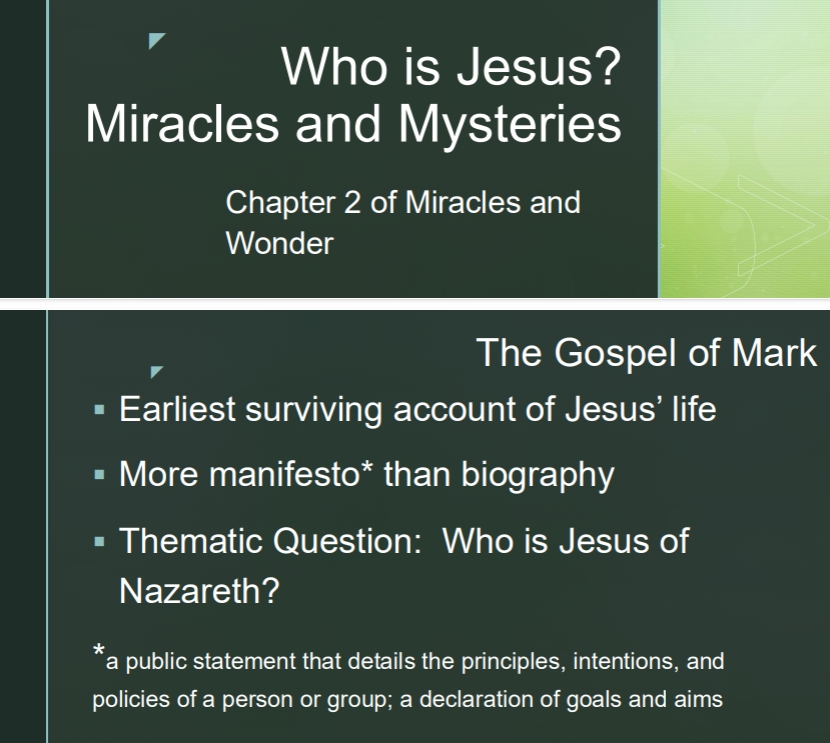 Jane Beebe led an interesting class on chapter 2 of Miracles and Wonder by Elaine Pagels. Here are the slides